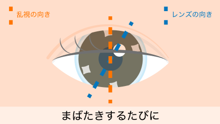フォーカスがひとつにまとまらず、見たいものがクリアに見えない乱視。よく見えるためには、乱視の向きとレンズの向きを常に合わせる必要があります。