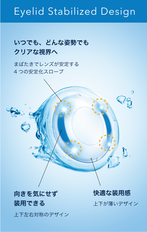 アキュビュー® 独自のレンズ設計は、まばたきでレンズの回転を制御。どんなときでも、フォーカスが合ったクリアな視界へ。